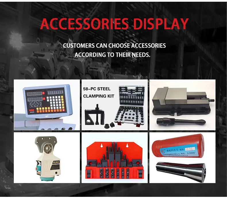 8. Las opciones de huso de la máquina de fresa de torreta incluyen R8, NT30 y NT40 para adaptarse a varios requisitos.